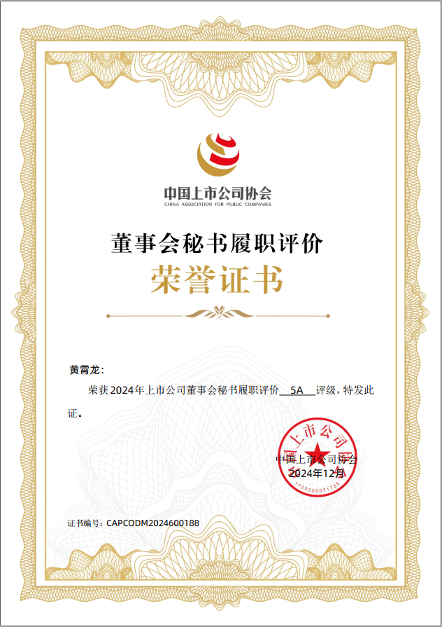 China Listed Company High-quality Development Pioneer Award